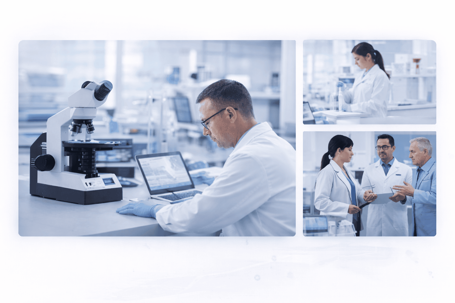 Soluciones de laboratorio con equipos científicos y tecnología especializada para investigación, análisis y preparación de muestras.